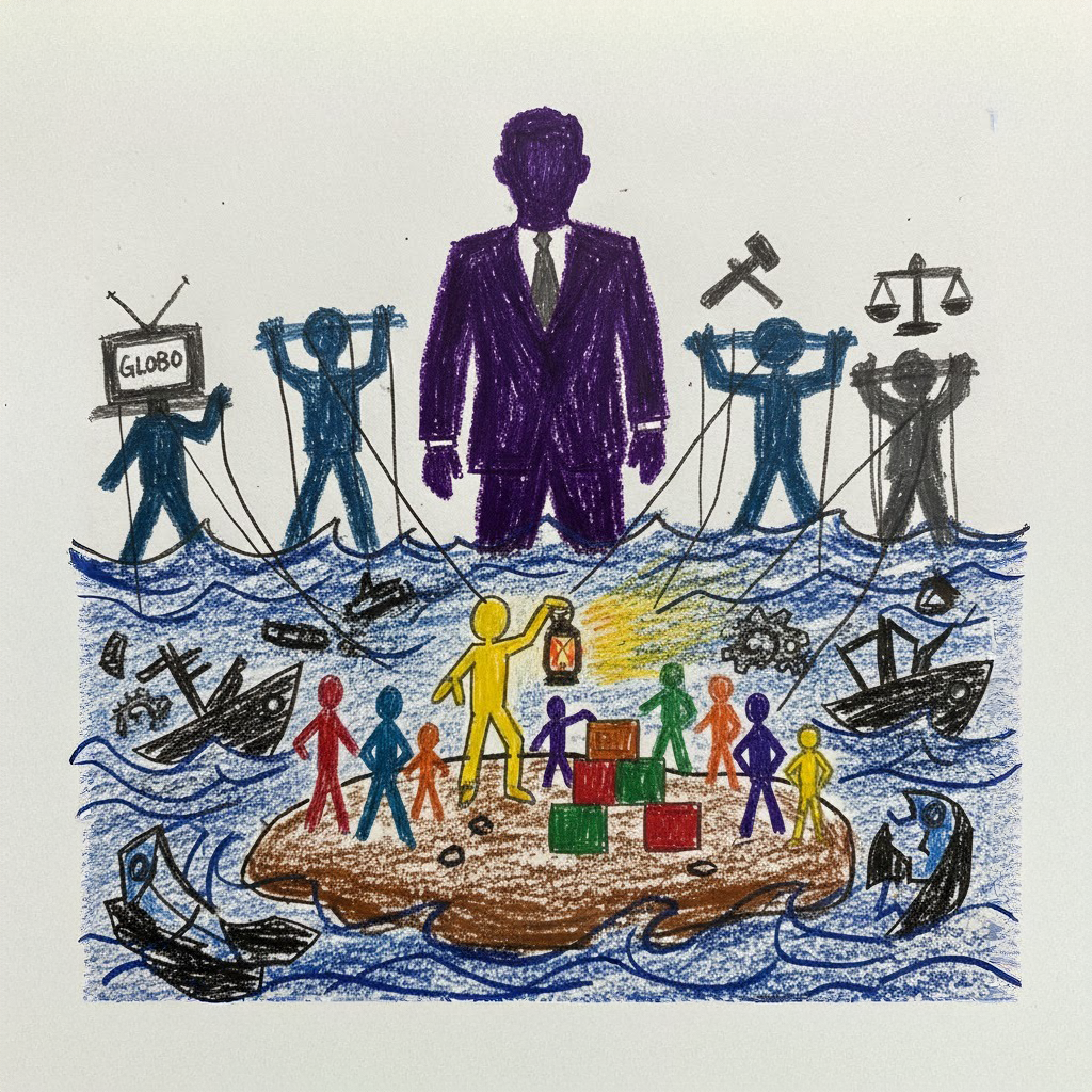 Em 2022, Lula retorna e vence as eleições, trazendo de volta a esperança de reconstrução nacional. O bolsonarismo, porém, se entrincheira nas redes e no Congresso. MDB, PP, PSD, União Brasil e PL compõem o bloco que impede avanços e trava reformas sociais. É a continuidade do golpe por outros meios. A democracia formal voltou, mas a estrutura de poder que nasceu do golpe segue viva, corroendo por dentro o que o povo tenta reconstruir.