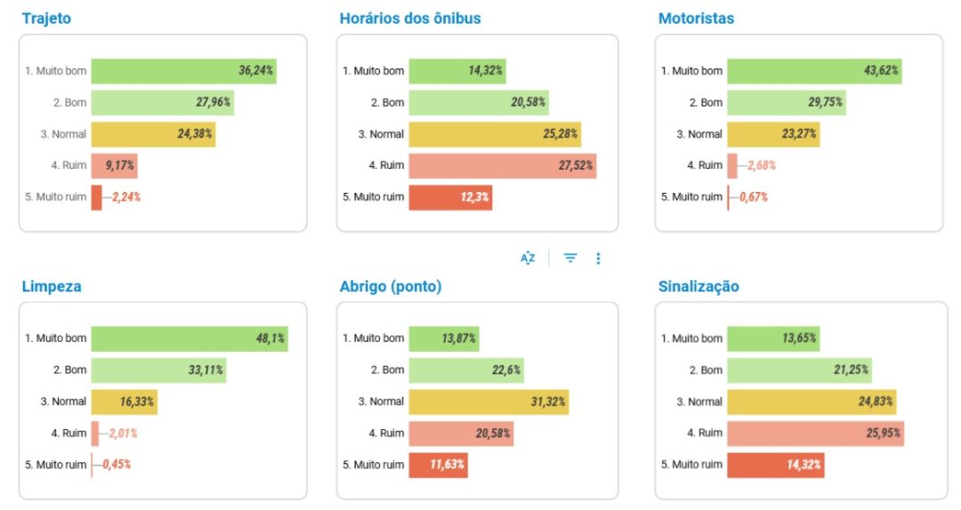 Apesar dos elogios, nem tudo é positivo: 40% dos usuários reclamaram dos horários dos ônibus, apontando que são ruins ou muito ruins. A sinalização nos pontos também foi criticada por 40% dos respondentes, e 32% consideram os abrigos inadequados.